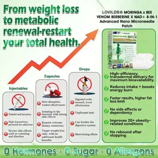 ๐๐๐๐๐๐๐ยฎ Moringaยท ๐๐๐ ๐ฏ๐๐ง๐จ๐ฆ ยท Berberine x NAD+ 10-in-1 Advanced Nano Microneedle Patch: 98% Absorption Rate, Transforming Weight, Liver, Gut & Skin Health