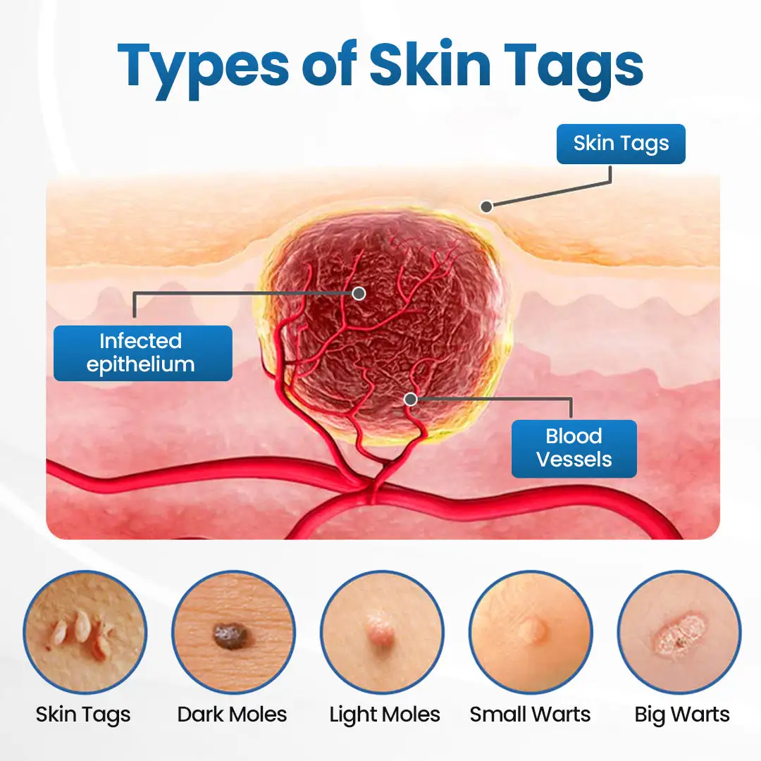 Skin tags, warts, small bumps, and rough patches often form when the skin experiences: