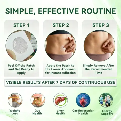 Just one visible patch per use. Apply directly to the skin — no swallowing, no mixing, no digestion required. The color-change patch lets you see the process as it works.