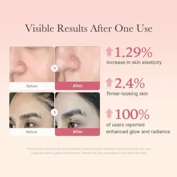 - Proven ingredients: Collagen, Vitamin C, Niacinamide