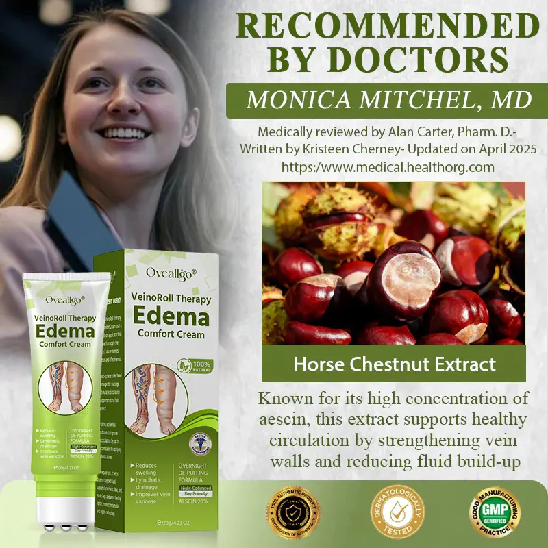 Oveallgo® VeinoRoll Therapy Edema Comfort Cream is crafted with botanicals known to support circulation, strengthen vessels, and ease swelling discomfort. Its lightweight, fast-absorbing formula delivers relief while leaving skin fresh and smooth. Chosen by many for its ability to restore comfort, it helps bring back a lighter, revitalized feeling.